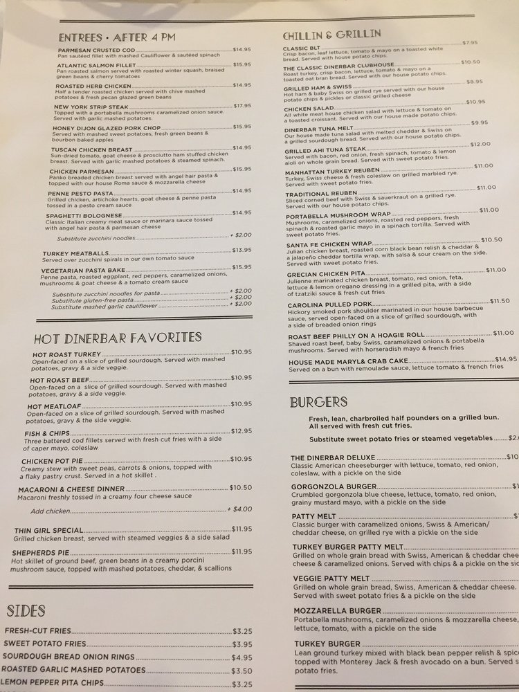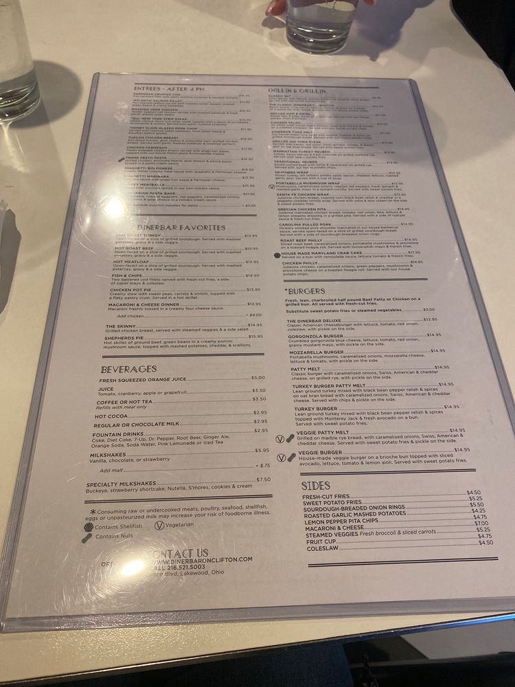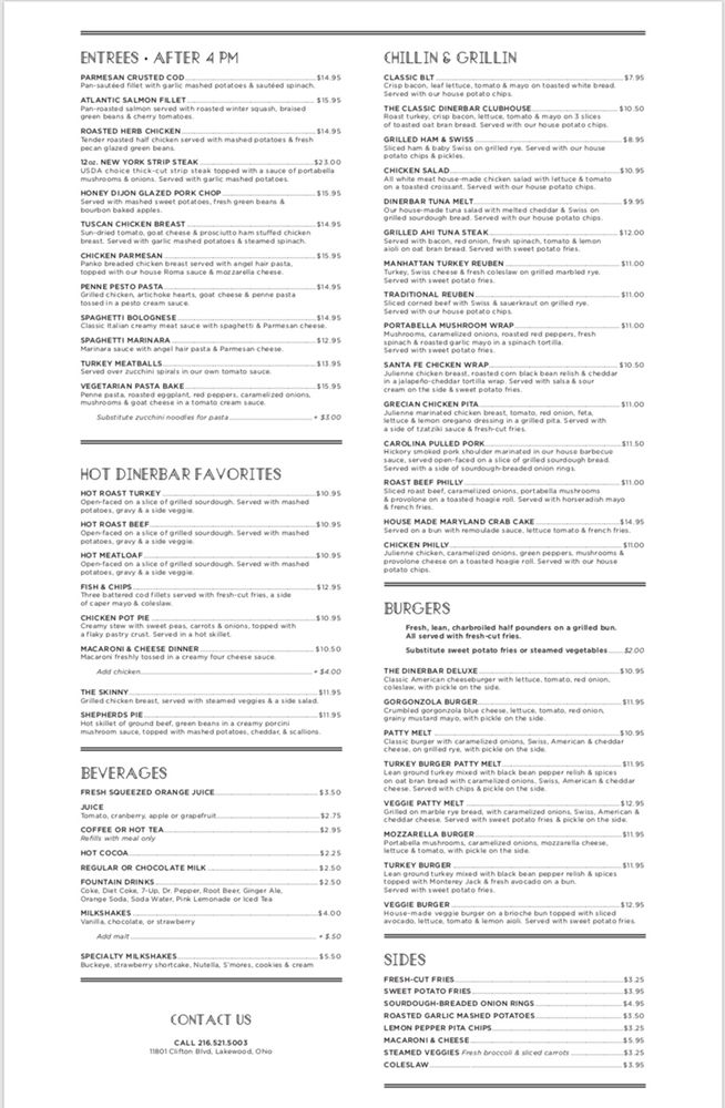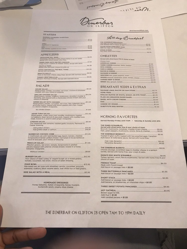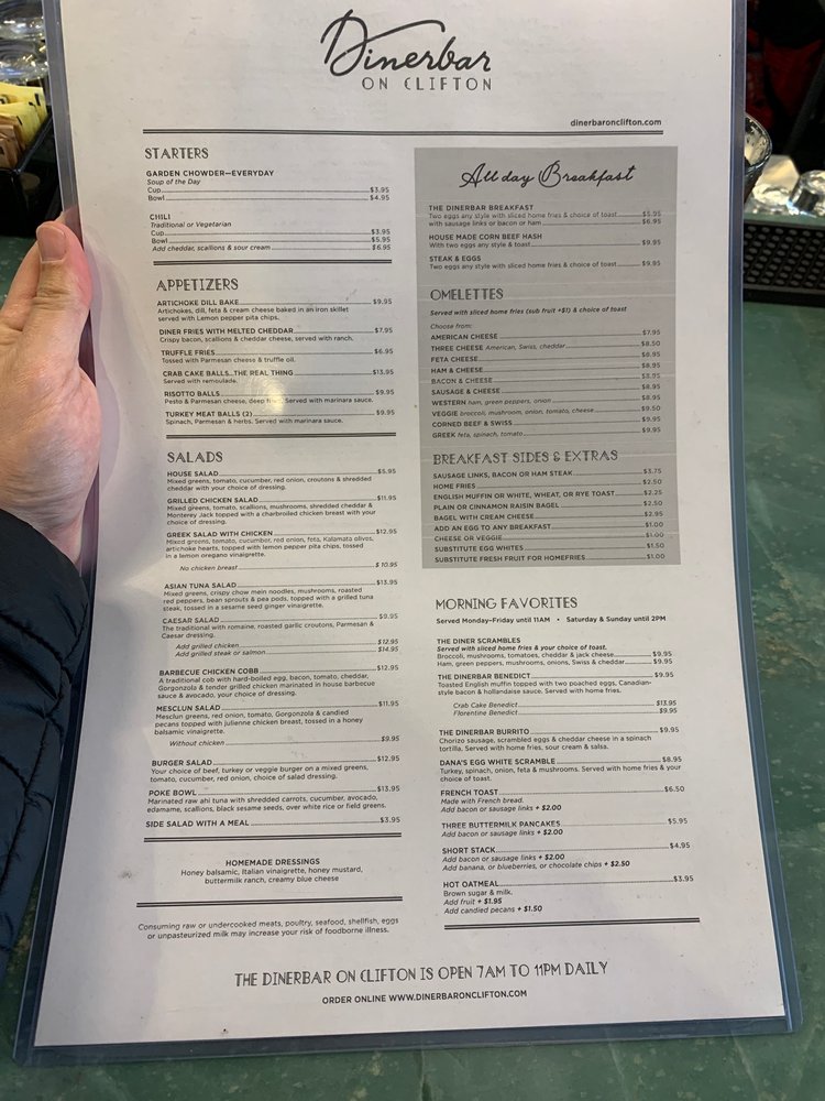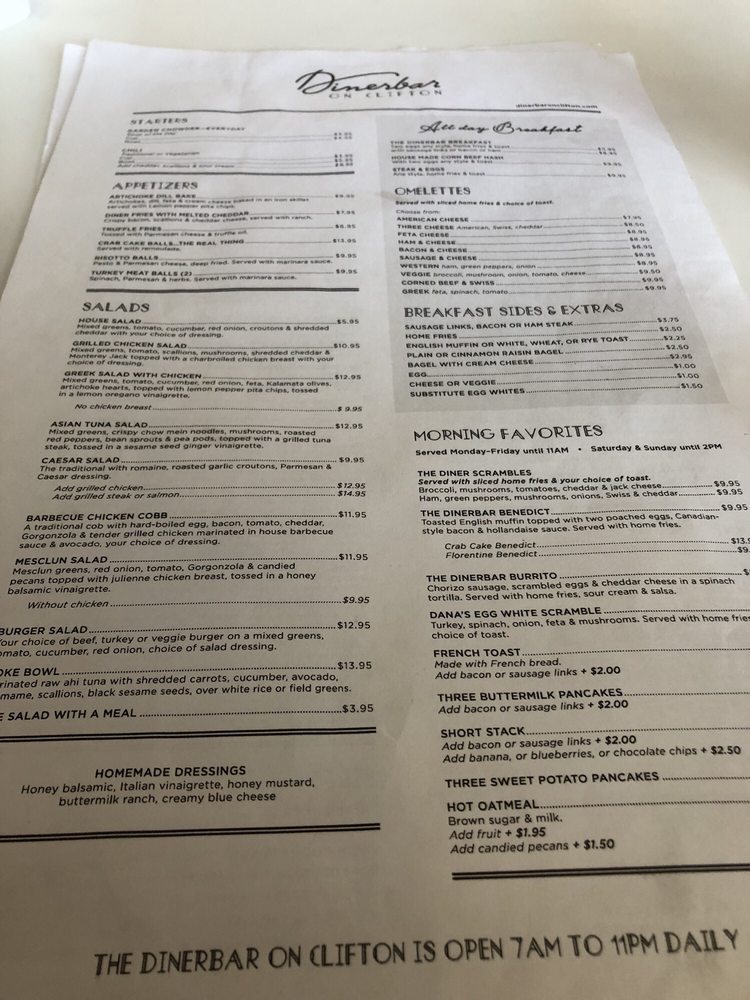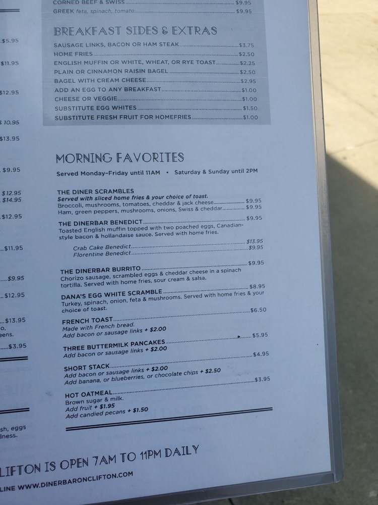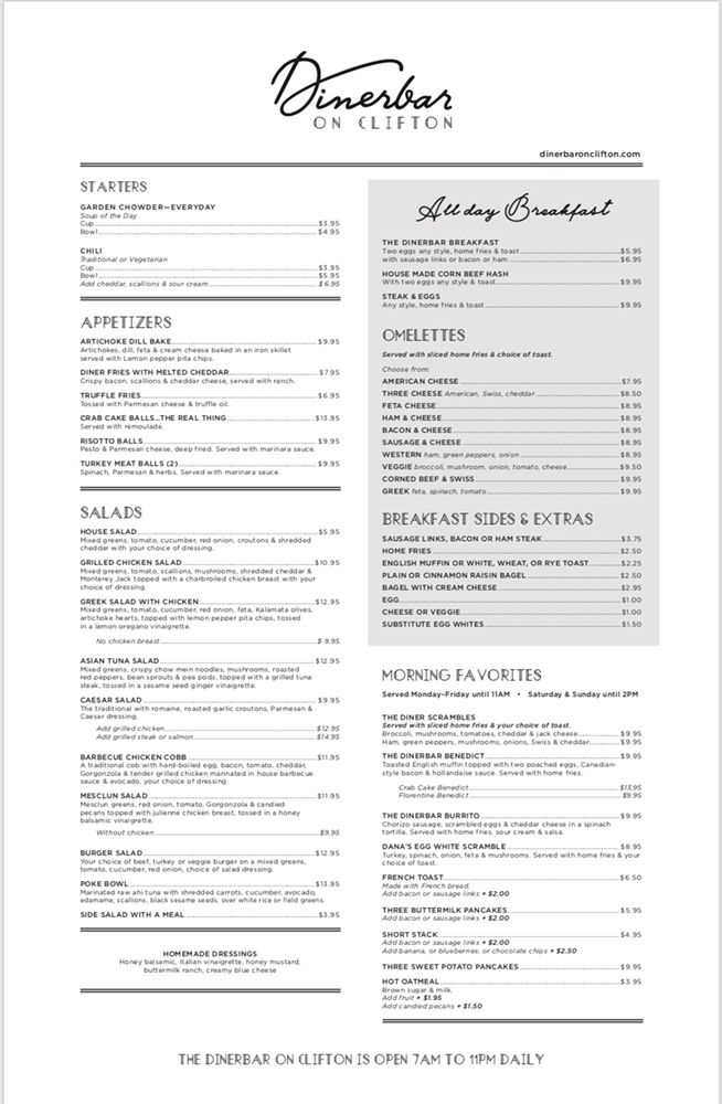 Dinerbar on Clifton Menu